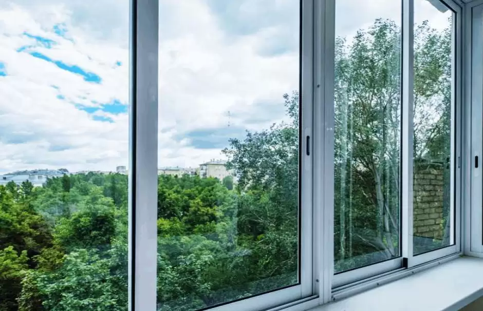 Для балкона использован самый простой и недорогой тип остекления - оостекление Слайдорс. Отодвигаются все створки конструкции. Выполнено: